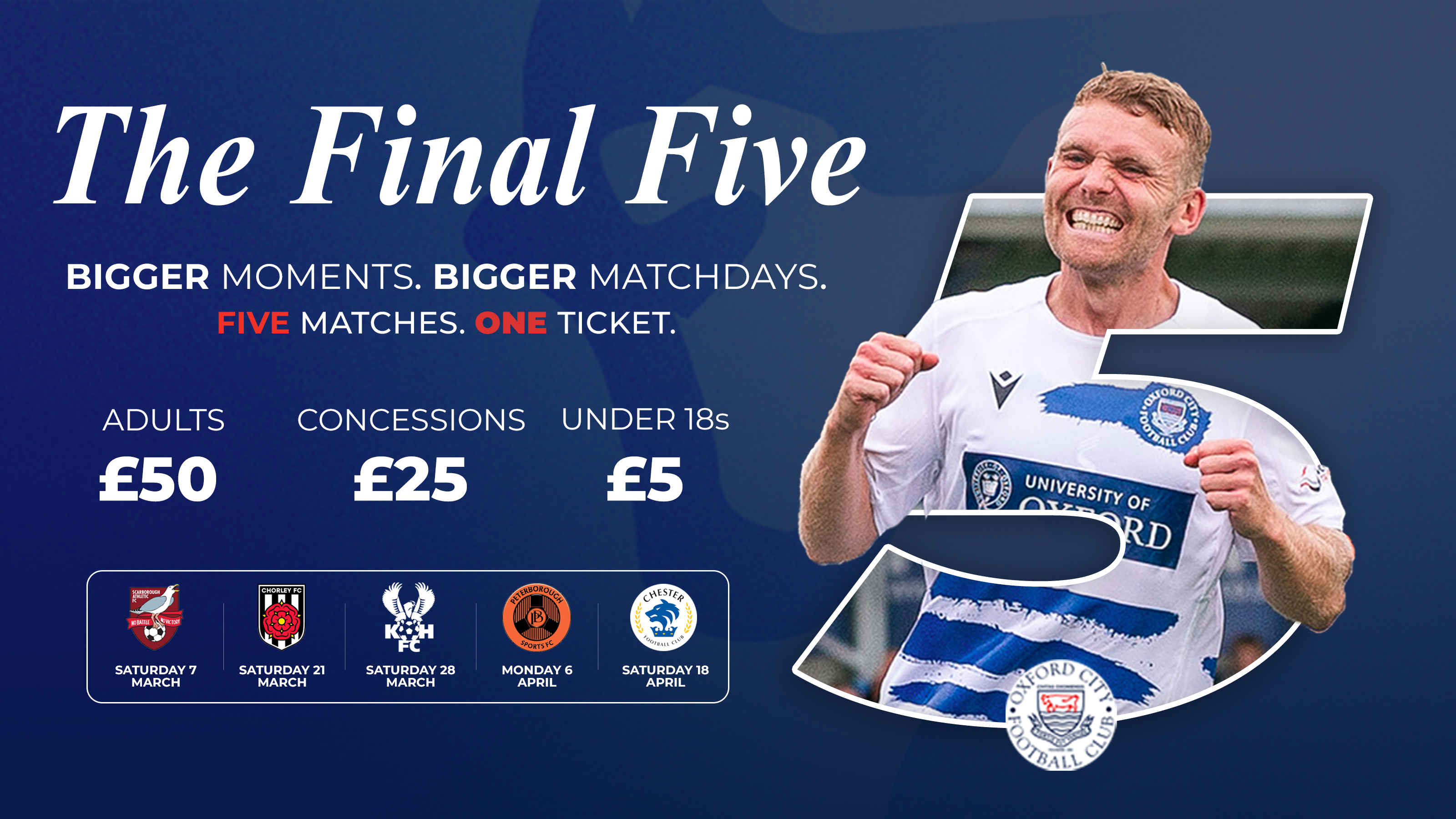 Discounted tickets for Oxford City FC's HUGE last five home matches in the 2025/26 Enterprise National League North season